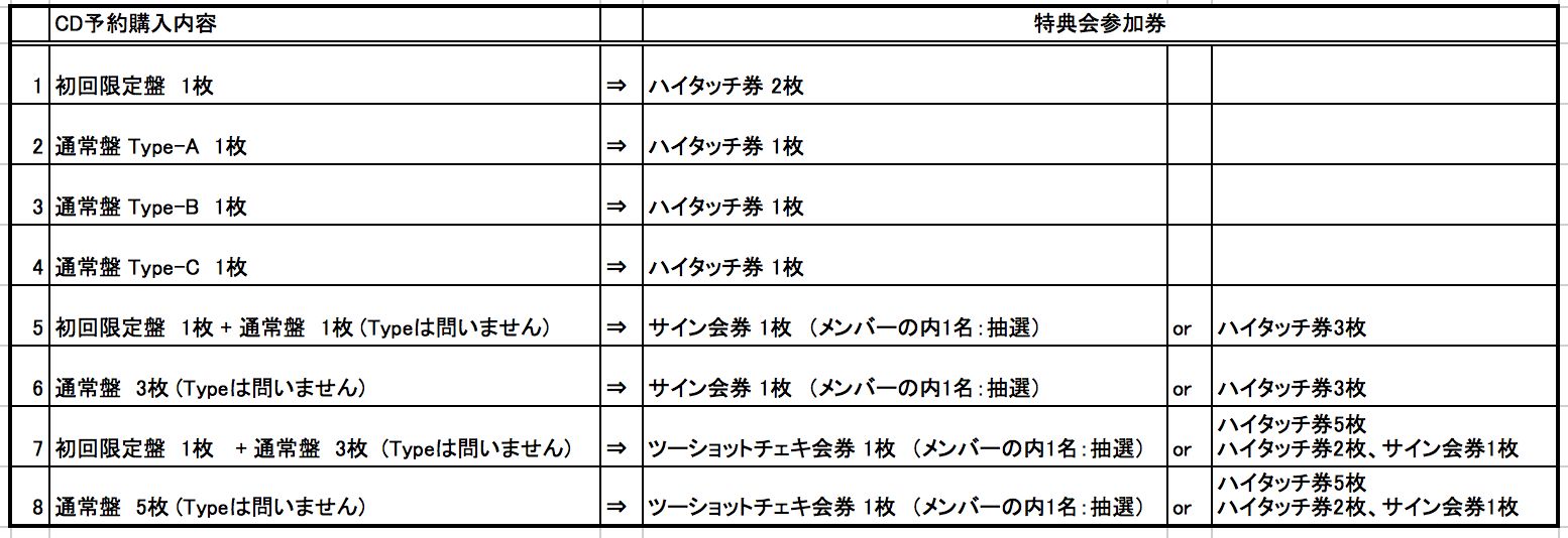 CDを予約・購入頂いた方にお渡しする「特典会参加券」は3種類ございます。(通常盤Type A,B,Cの区別なし)