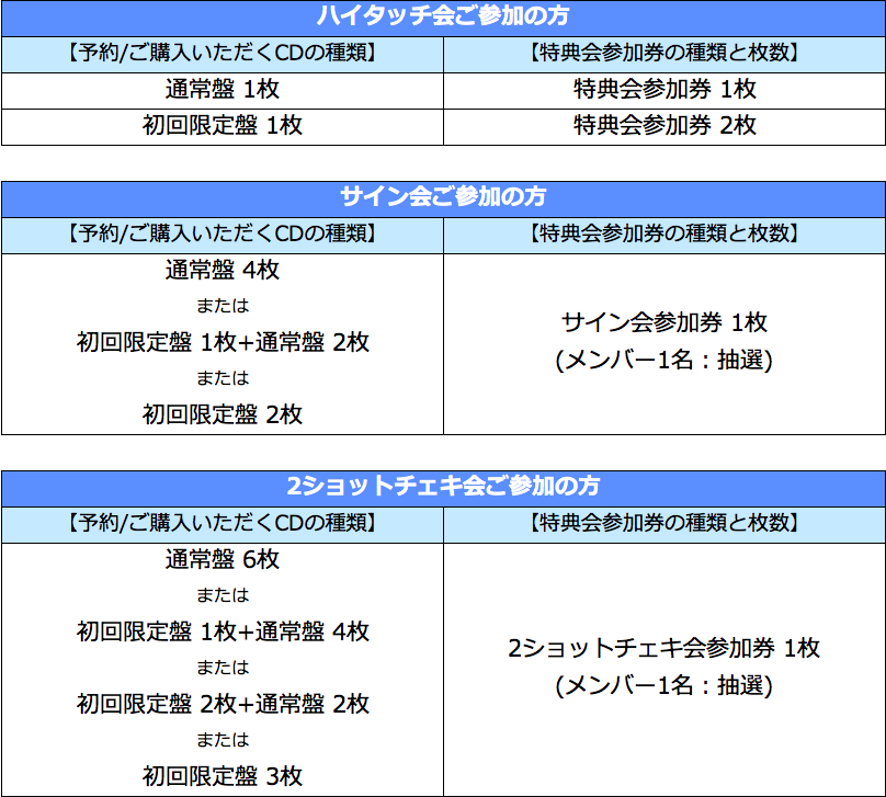 予約/ご購入のCDの組み合わせによってご参加いただける特典会内容が異なります。